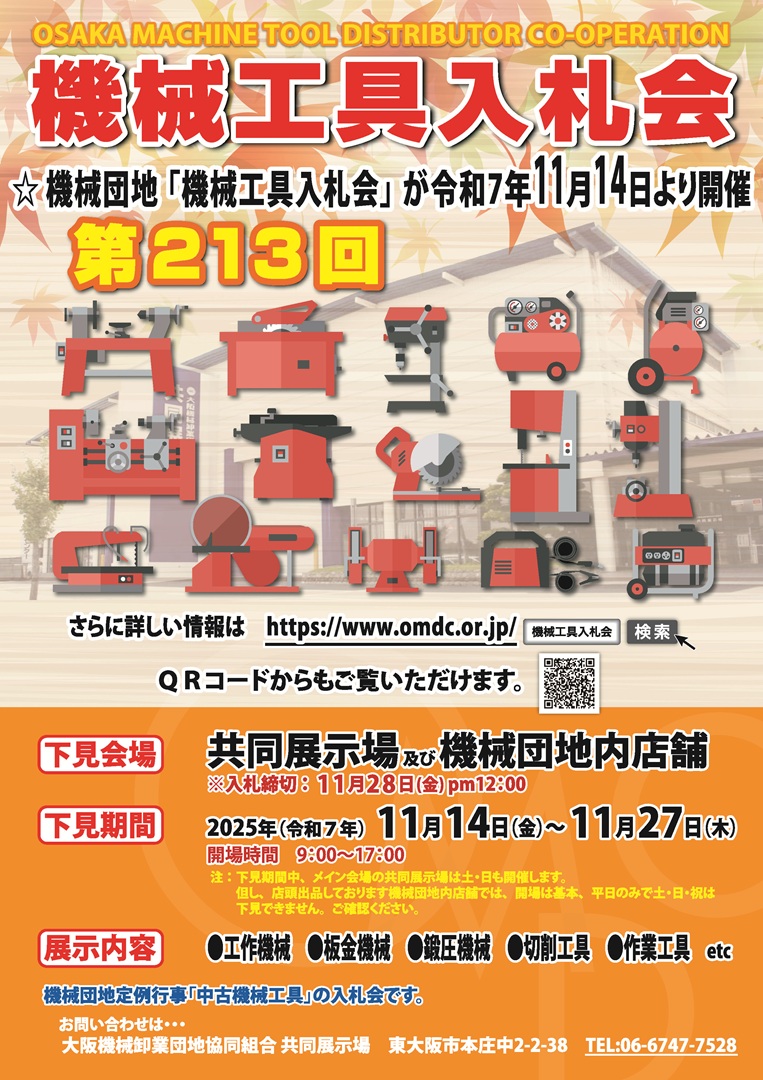 大阪機械卸業団地協同組合では、中古機械工具の入札会を定期的に開催しております。